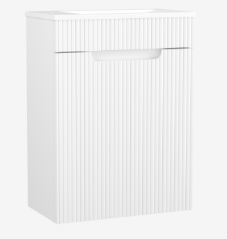 La collection COME propose un meuble sous vasque au design contemporain, décliné en plusieurs largeurs pour s’adapter aussi bien aux petites qu’aux grandes salles de bains. Les façades sont disponibles en blanc brillant laqué, gris orage laqué ou chêne doré mélaminé.